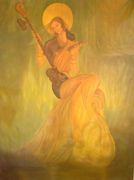 Saraswati, Goddess of music, wisdom, learning, painting by Giri Raj Sharma